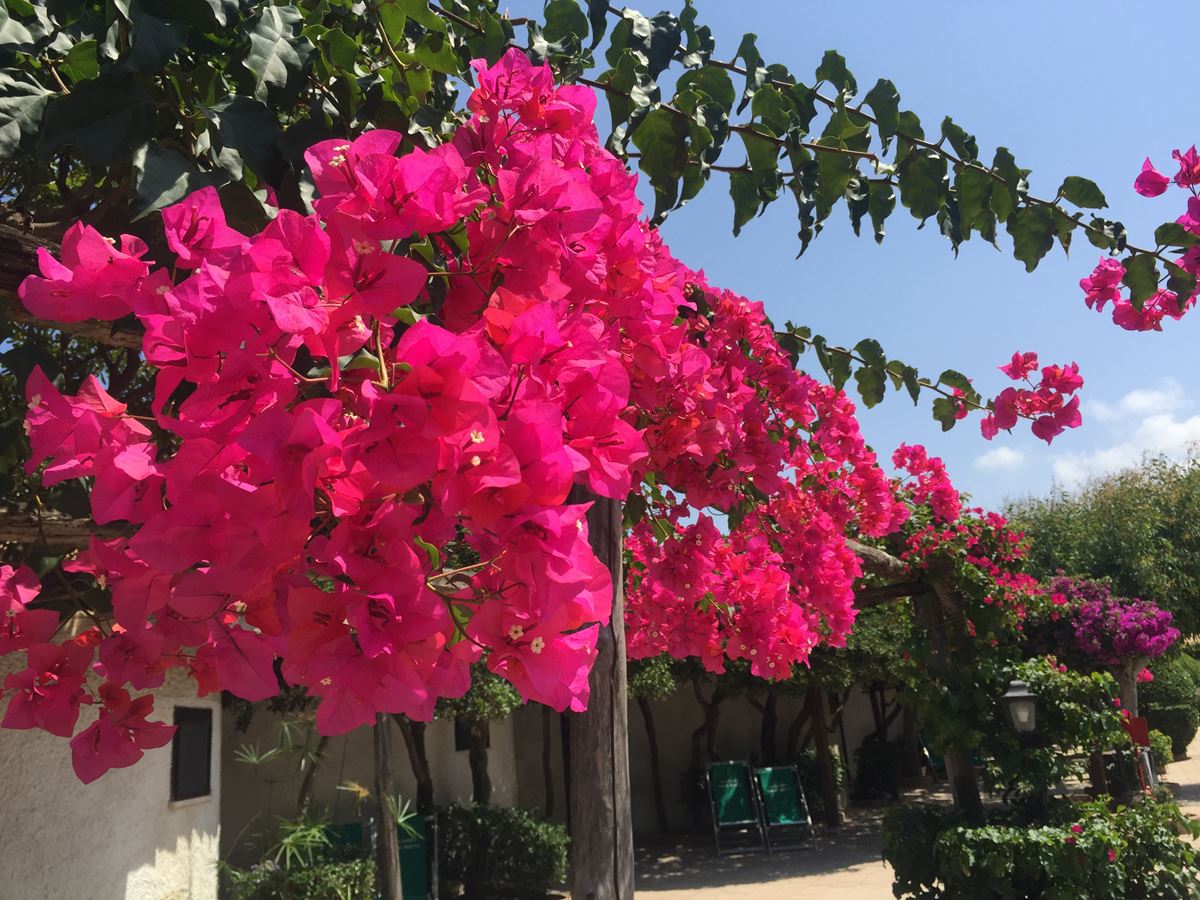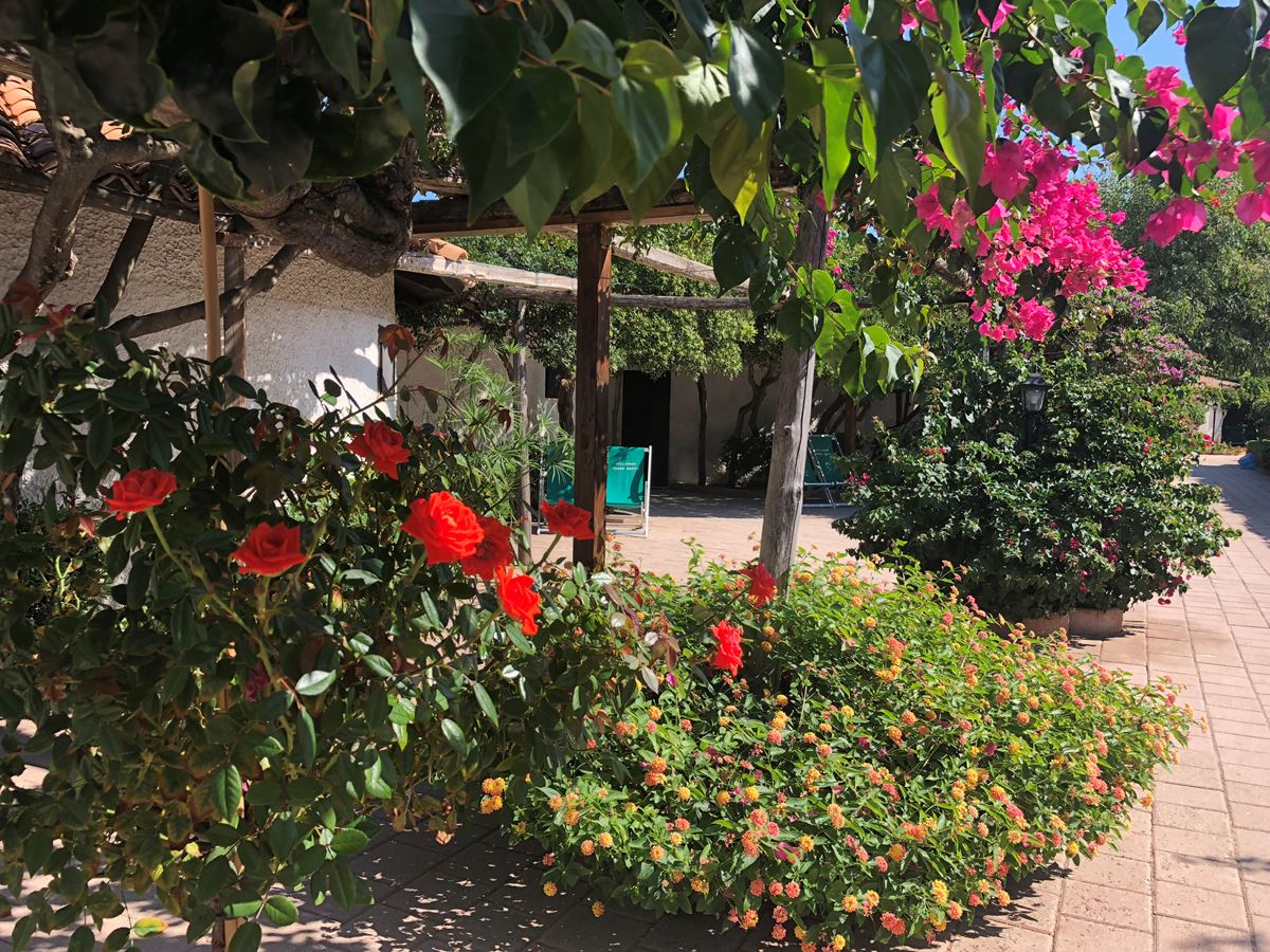 Le camere d’hotel sono tutte a piano terra immerse in un panorama marino colorato da piante, fiori e alberi.